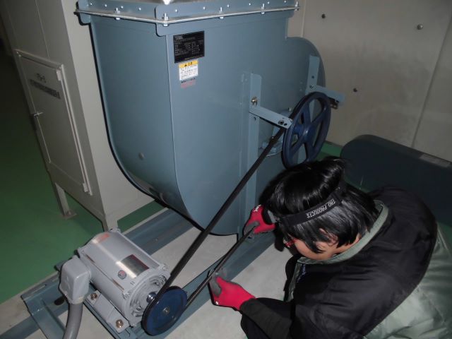 【2025.9_福島市某施設様】送風機メンテナンス 2025.09.24 施工実例 ◇2025.9 送風機メンテナンス◇ 福島市某施設様にて送風機のメンテナンス作業を行いました。 大きな送風機では、回転する軸を支えるベアリングの機能を維持するため油を注入するなどのメンテナンス作業を必ず行う必要があります。 送風機は機械室などにあるため、お客様が故障に気付きにくい設備となっております。定期的なメンテナンスで機器の機能を維持するには日々の点検が欠かせません。 送風機の点検、メンテナンスは福島機工にお任せください。 聞こうエアコン 福島機工