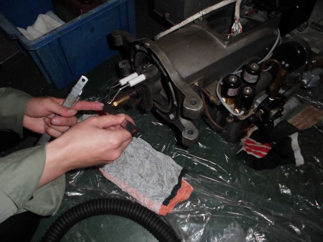 汚れが進行した缶体内部をきれいに清掃すると、空気の通過する量が変わるために燃焼の調整を行う必要があります。そのため、熟練した作業員の技術が必要となってきます。