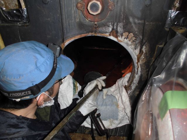 燃焼によって煤などが缶体やバーナー部に付着するため、ボイラーのメンテナンス作業には人数と作業時間がかかります。各自の役割分担をし、効率的に作業を行う必要があります。